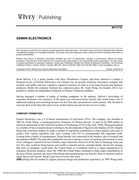 KHT - Online PDF GEMINI ELECTRONICS CASE STUDY Doc ManyBooks